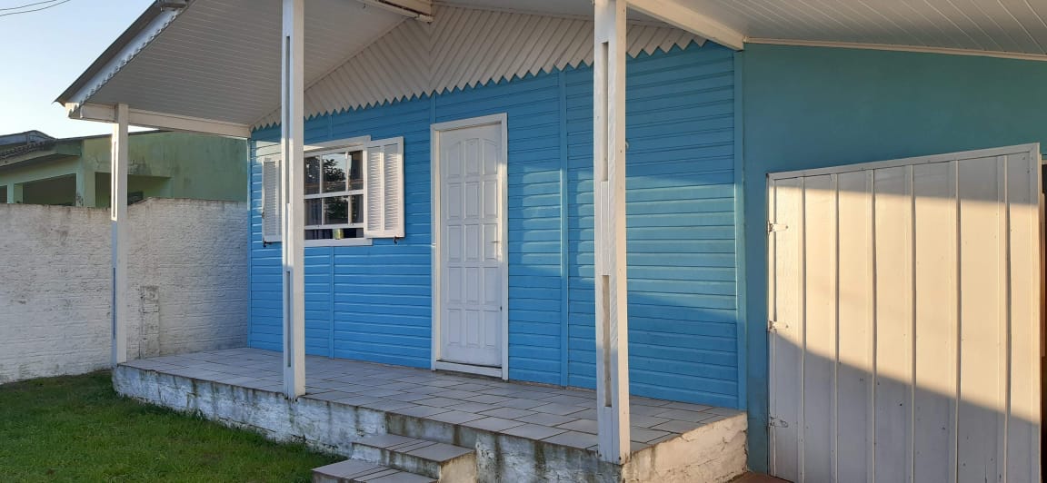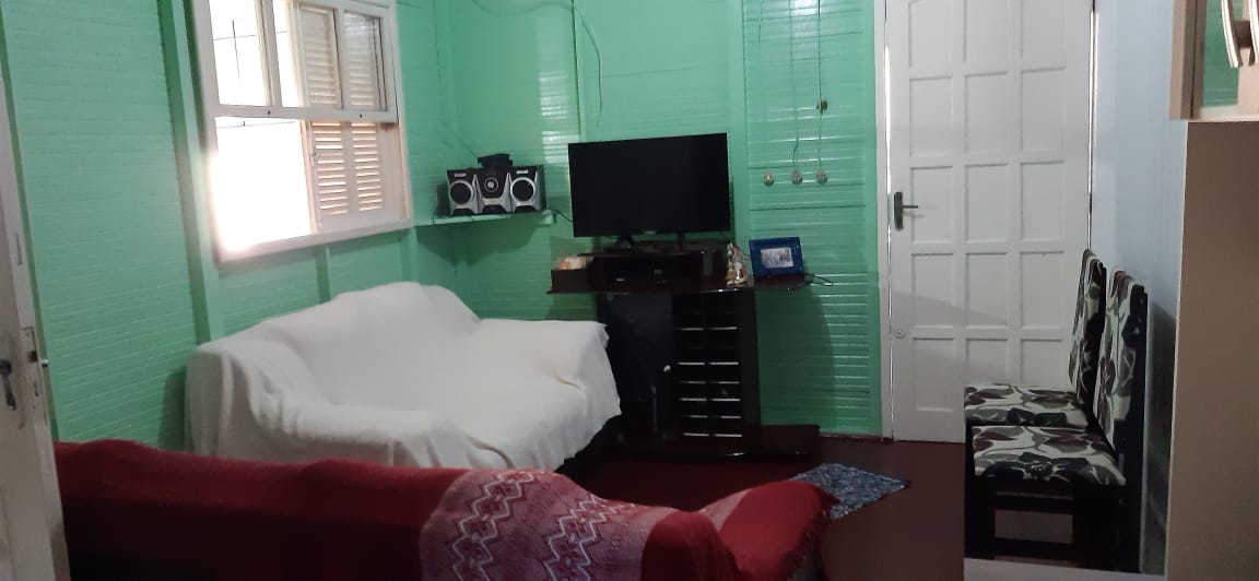 Casa em cedrinho, mista, com dois quartos, um banheiro, garagem de alvenaria. Fundos com uma horta pessoal.